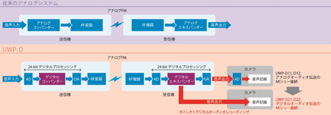 ソニーのデジタルオーディオプロセシングは、デジタルコンパンディングにDSP(デジタルシグナルプロセッサー)を使用しており、高音質を実現します。優れた信号応答性により、オリジナル音源に忠実に収音します。
