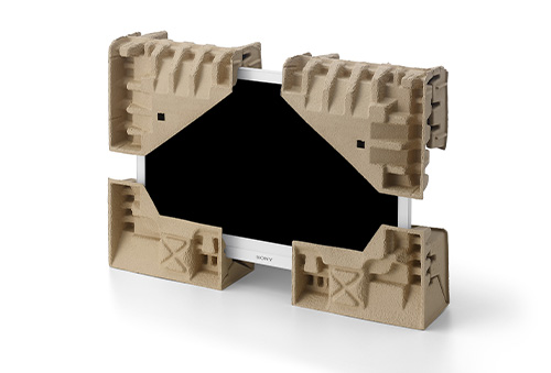 パッケージではパルプモールドの緩衝材を使用し、発泡スチロールを使わない梱包を実現しました。