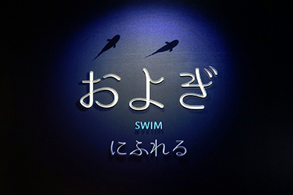 NIFRELは“感性にふれる”をコンセプトに、生きものの個性の魅力や多様性を、アーティスティックな空間演出で表現する施設です。今回、ソニービジネスソリューションが同館に納入したのは、2020年2月28日(金)からオープンする新展示ゾーン「およぎにふれる」ゾーンの入り口サインボードとなります。
