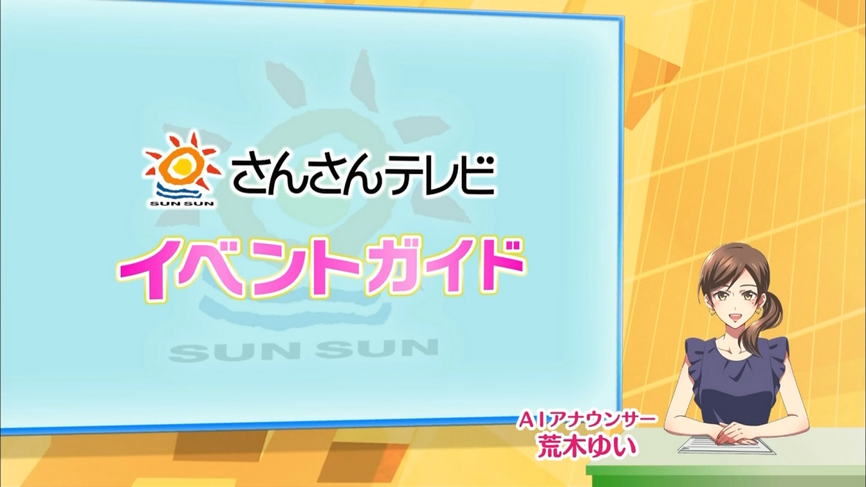 今回、最初に「荒木ゆい」の導入を行う番組は、毎日3回放送を行っている1回1分20秒ほどの「イベントガイド」という番組です。この番組は、県内で催される各種イベント情報を紹介する番組です。毎週1回制作を行い、1週間リピートで放送しています。