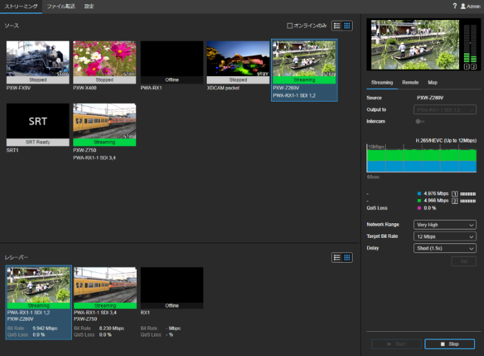 USBドングル、無線LAN、イーサネット接続を搭載するカムコーダーからのストリーミングはもちろん、モバイルアプリケーションのXDCAM pocketからのストリーミングに対応しています。