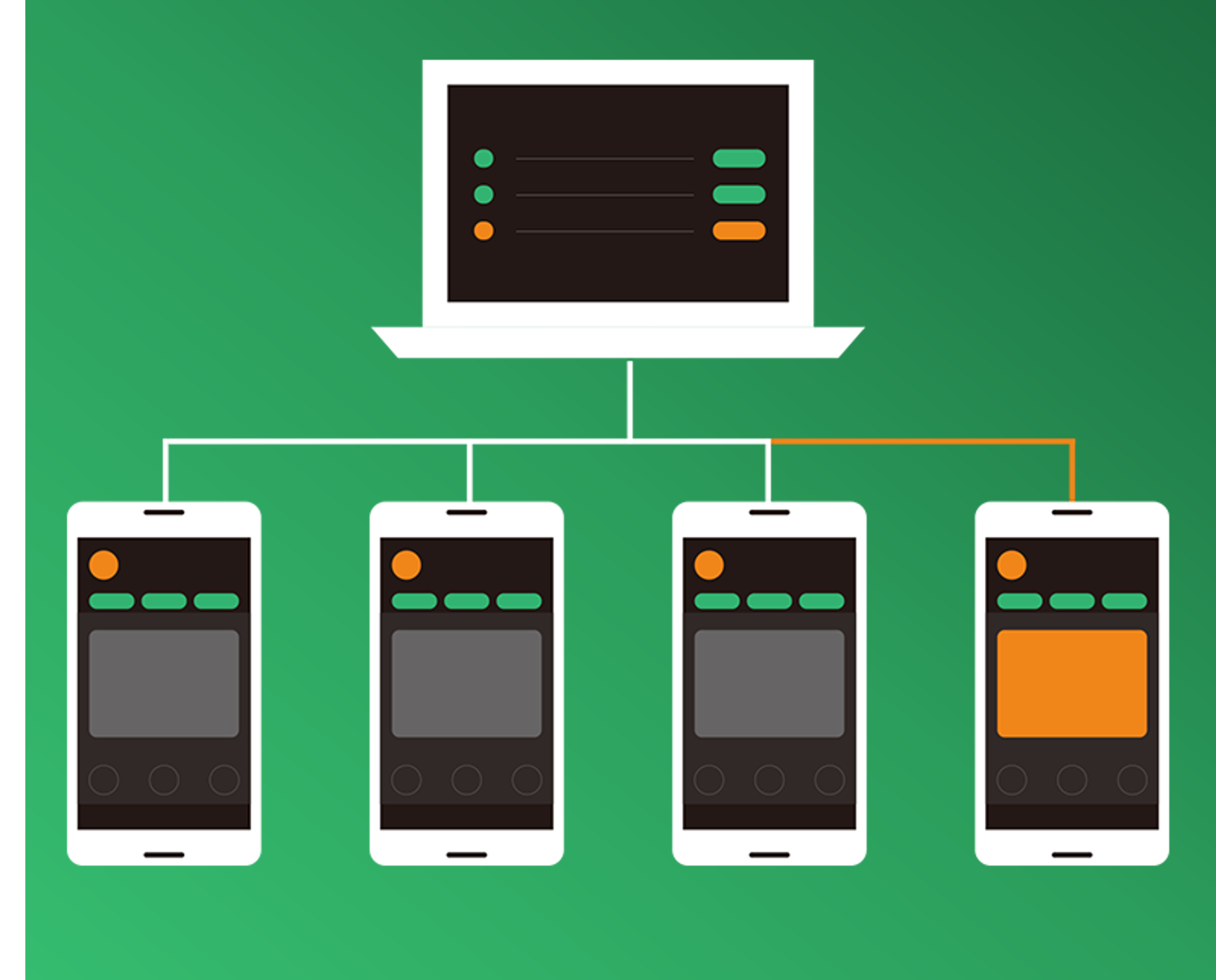 Webブラウザによる管理画面で、スマホの状態監視や、遠隔でグループの一括設定ができるため、管理者の端末管理業務が軽減できます。