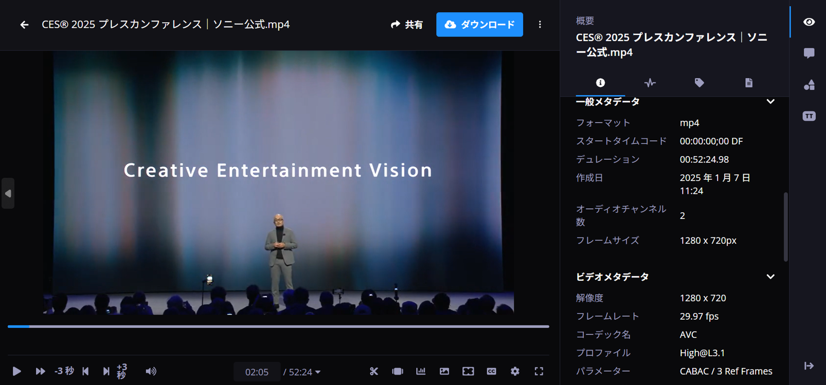 ソニーグループ株式会社では、自社のブランディングマネジメント活動や広報活動において、以前から動画を利用しています。ソニーのことを多くの人に理解していただくために、動画というコンテンツは効果的だと考えているからです。私が所属するコーポレートブランディング部門では、ソニーが出展している大きなイベントの際に活用する動画や、企業のブランドコンセプトムービー、ブランドキャンペーン動画といった公式WEB、YouTube、SNSに投稿する動画などを制作、管理しています。その際に、『Ci Media Cloud』という映像に特化したクラウドストレージサービスをグループ各社との映像共有や、動画制作会社とのやり取り、アーカイブに利用しています。