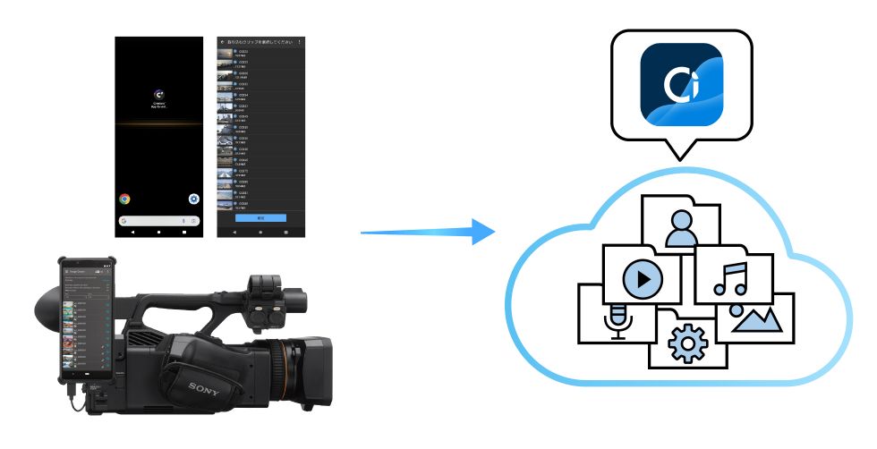 カメラやスマホで撮影した素材は、追加の伝送ハードウェアなしでCiへダイレクト転送できます。面倒な設定は不要で、簡単にCiに素材をアップロードできるようになります。