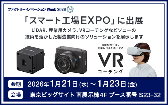 ソニーマーケティング株式会社は、2026年1月21日(水)〜23日(金)に東京ビッグサイトで開催される「ファクトリーイノベーションWeek 2026 スマート工場EXPO」に、インテグレーションサービス、外観検査向けカメラソリューションコーナーと新製品LiDARデプスセンサーを出展します。