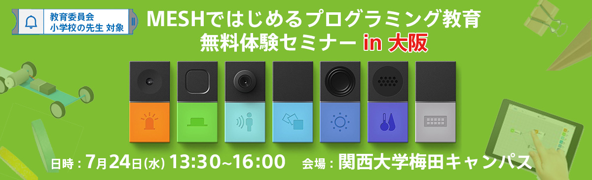 2020年小学校でのプログラミング教育の必修化にあたり、MESHを授業でご活用いただく際のポイントや 実践事例の紹介、模擬授業を体験いただける参加型のセミナーを開催します。