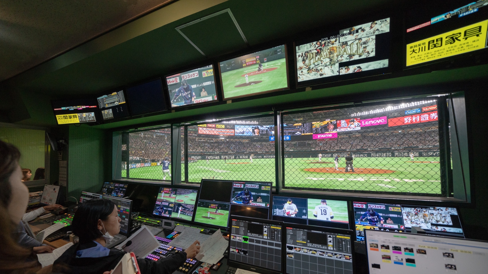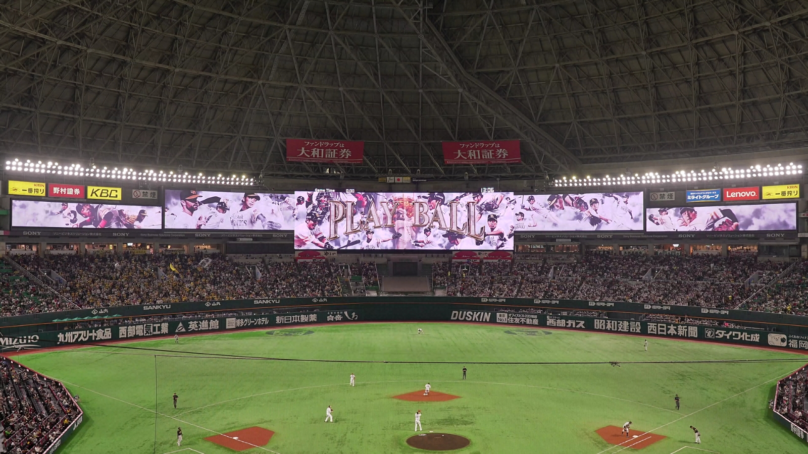 ソニーのスタジアム・アリーナビジネスは、迫力の大画面で観客を魅了する大型映像装置、選手の表情までを鮮明に写し出すライブカメラなどの映像音響システムの提供に加えて、映像コンテンツの制作や運用業務の支援など、映像演出面におけるソリューションも提供しています。