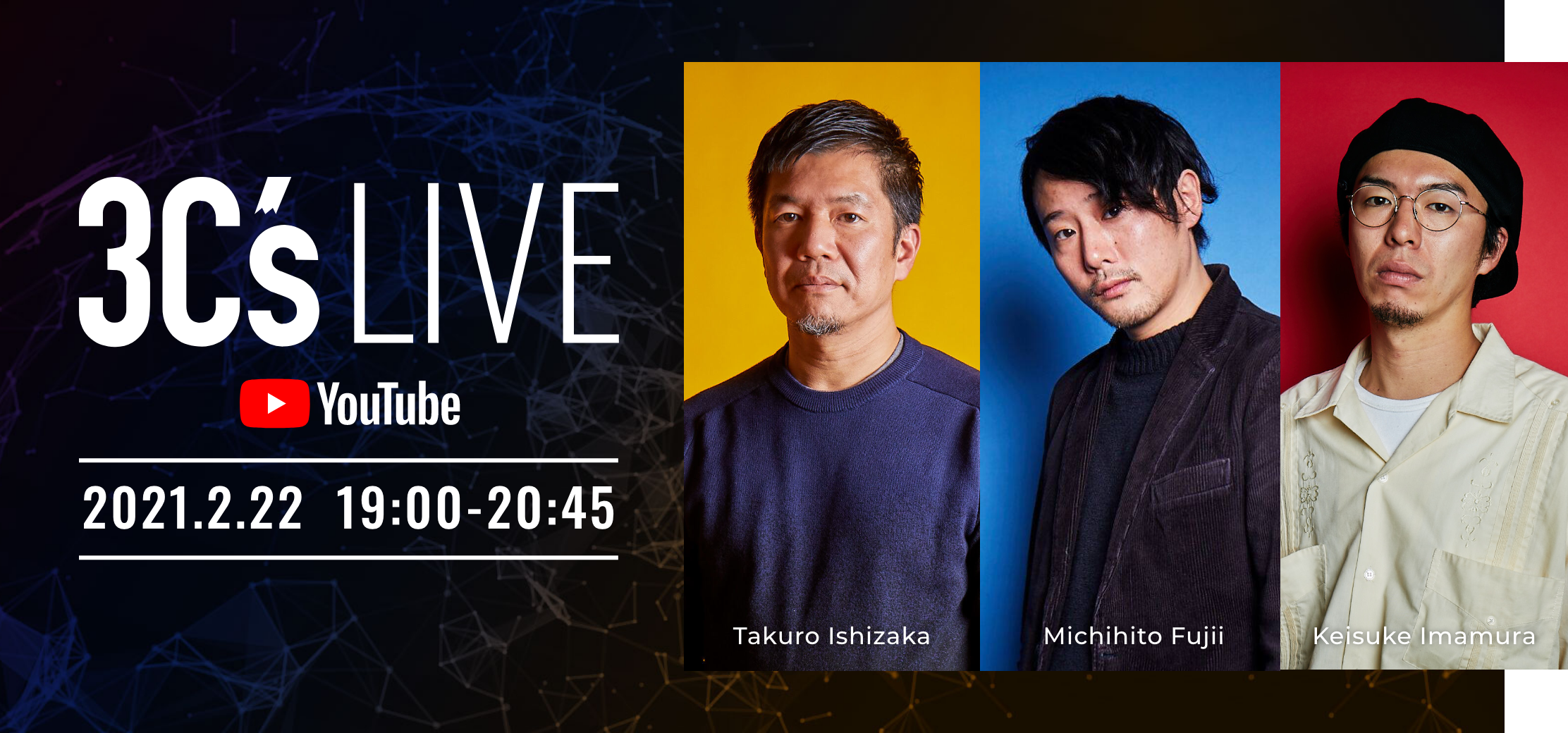 映像に魂を吹き込み、人を魅了し続けるものは、他でもない映像クリエイターの飽くなき探求心。そのこだわりの真髄に迫るWEBマガジン「3C’s」が、初となる単独ライブ配信を開催します。2つのトークセッションで紐解くプロ映像クリエイターたちのCreative Craftsmanship Challenging(3C’s)とは?