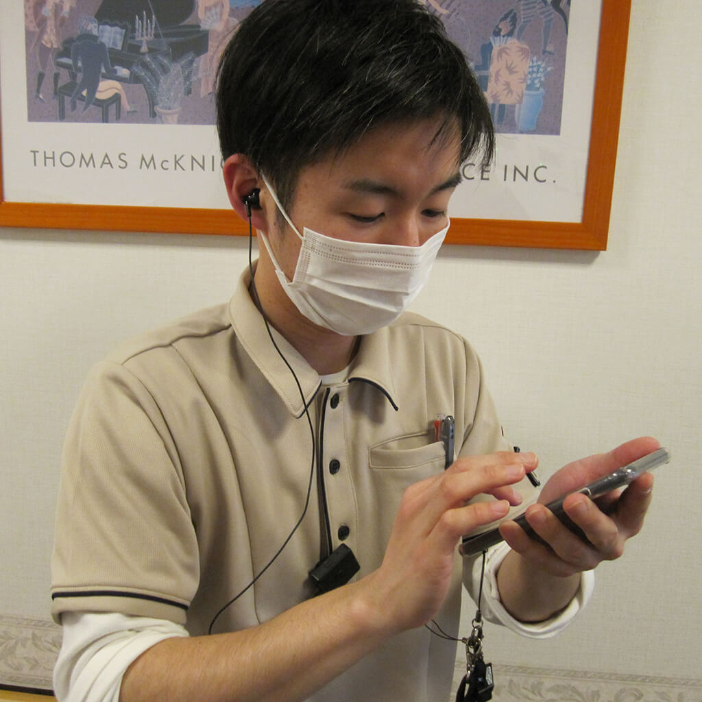 私たちは、介護施設の運営と、在宅専門薬局の運営をしている会社です。この度、介護施設で、新しい介護記録システムと服薬管理システムを導入するタイミングで、全施設にスマホが導入され、それを機にインカムの見直しをすることになりました。これまでにも、業務のコミュニケーションツールとしてトランシーバーの専用機を利用していたのですが、介護記録用のスマホ、ナースコール用のPHS、トランシーバーの3台の機材を持ち歩くことになるため、スタッフに非常に負担になるだろうと考え、コミュニケーションツールをスマホに集約できないか、という考えからスマホインカムを探しました。