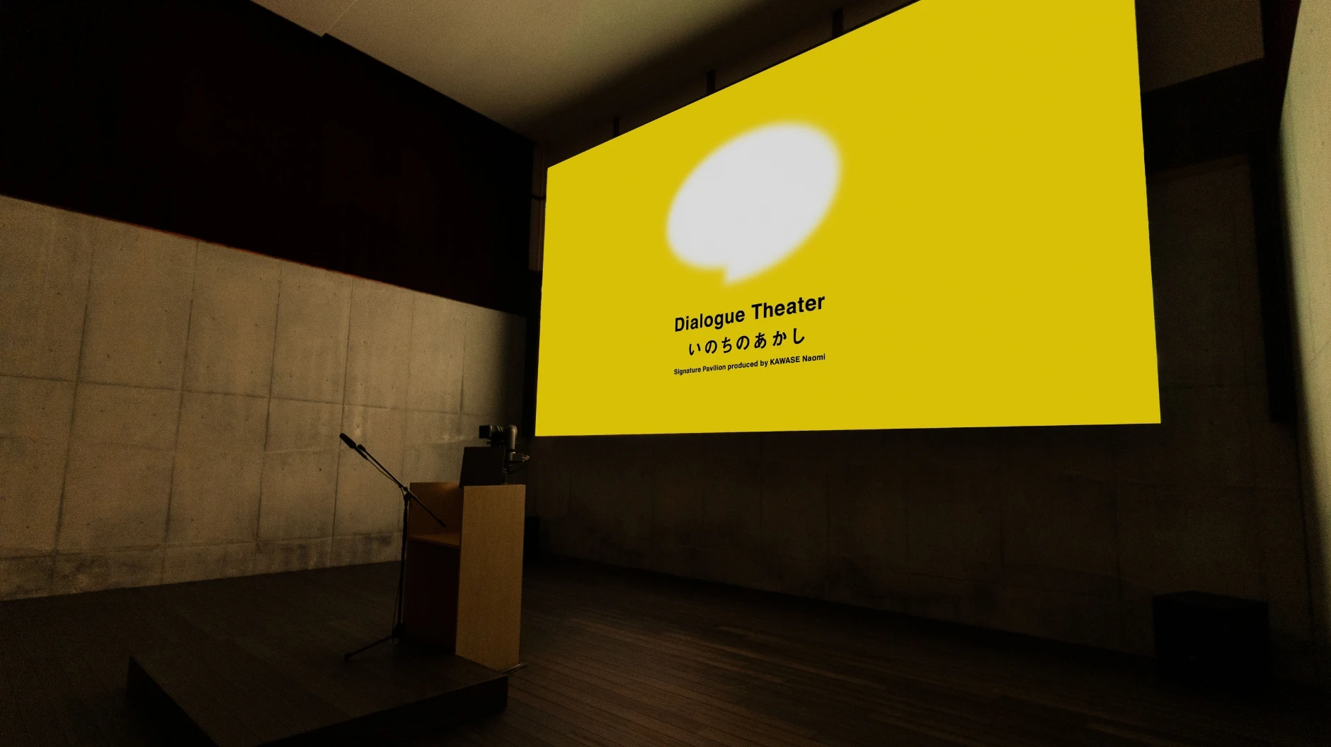 シグネチャーパビリオン『Dialogue Theater - いのちのあかし -』では、京都府福知山市と奈良県十津川村の2つの廃校となった校舎を移築・再利用しています。これらの建物が、「いのちを守る」をテーマに対話を通じて世界の至るところにある「分断」を明らかにし、その解決を試みる実験場となります。来館者には共通の「問いかけ」が書かれたカードが配られ、その中から代表して選ばれた1人と、画面に映し出された世界のどこかにいるもう1人が、184日間の会期中、毎日変わるトークテーマに沿って対話を進める内容となっています。