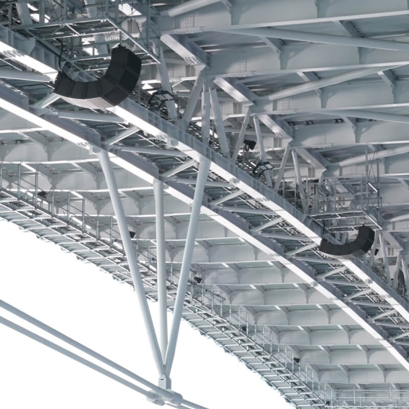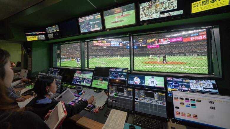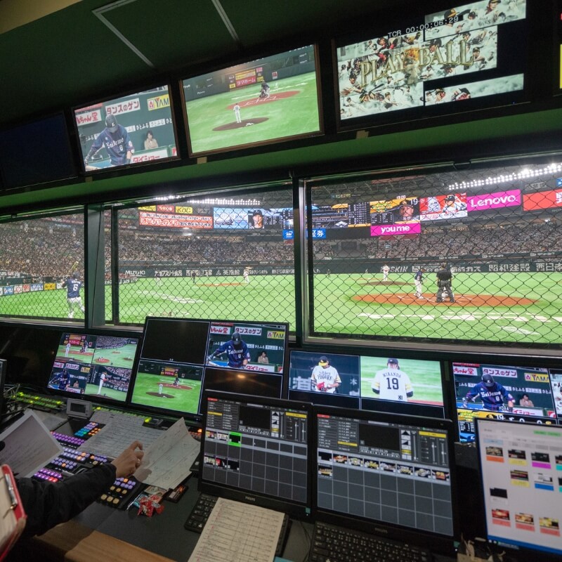 選手の表情までを鮮明に写し出すライブカメラなどの映像音響システムの提供に加えて、映像コンテンツの制作や運用業務の支援など、統合演出システムによるライブエンターテインメントを提供します。