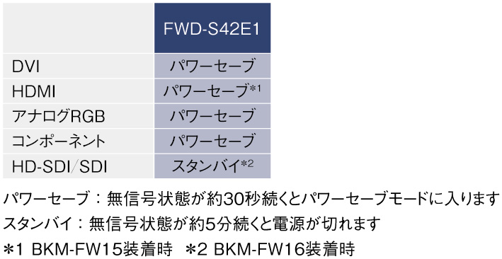 入力信号がないときに、自動的に電源を落として無駄な電力消費を抑える機能です。入力によって、電源が切(スタンバイ)状態になるものと、信号が再度入力されると自動的に電源が入るもの(パワーセーブモード)があります。