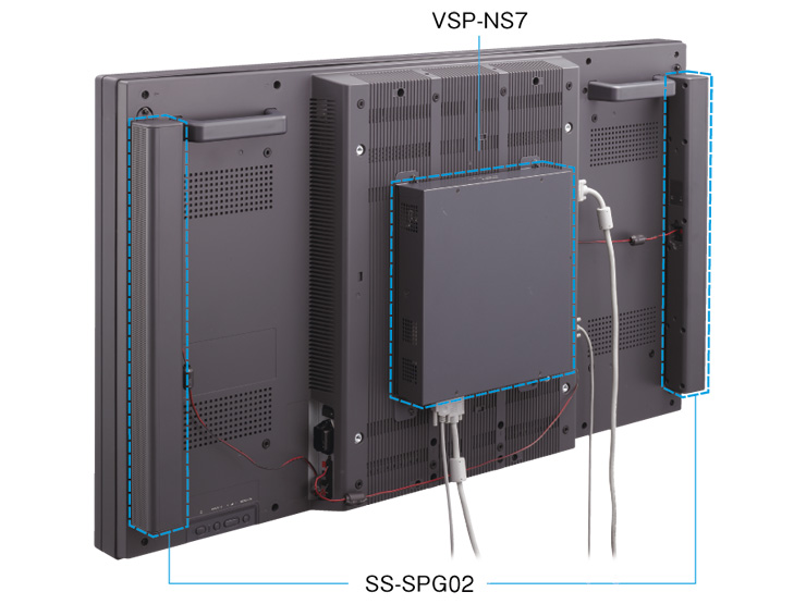 本体背面の設置スペースに、デジタルサイネージプレーヤー VSP-NS7(別売)をすっきりと一体化設置が可能。設置スペースや設置コストを省くことができます。