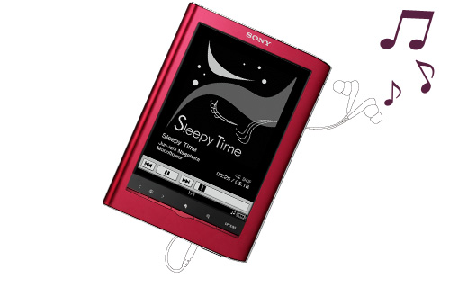 本体に保存した音楽データ(*)を再生できます。ヘッドホンを接続すれば、音楽を聴きながら読書が楽しめます。リピート再生やシャッフル再生も可能です。
