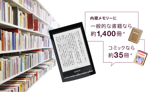 Reader(リーダー)は、約2GBの内蔵メモリーを搭載。一般的な書籍なら約1,400冊(*)、コミックなら約35冊(*)を保存可能です。たくさんの書籍をコンパクトに持ち歩けるので、好きなときに好きな場所で、そのときの気分に合った1冊を選んで読めます。