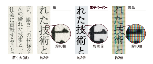●モノクロ表現に優れる:モノクロ中心の電子書籍の表示に適する