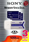 (1) 3枚の「メモリースティックデュオ(128MB)」と1枚の「メモリースティックデュオアダプター」をセットにしたお得なパッケージ商品