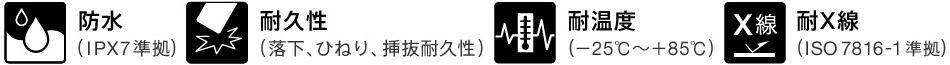 安心設計で「防水」「耐久性」「耐温度」「耐X線」の効能を実現。