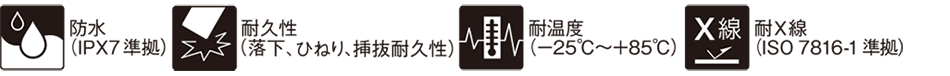 ●安心設計で「防水」「耐久性」「耐温度」「耐X線」の効能を実現