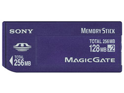 ※“メモリースティック”の内部に128MBのメモリーを2つ搭載しており、合計256MBのデータを記録・保存することができます。ご使用の際は、本体裏面のメモリーセレクトスイッチによりメモリーを選択できます。ただし、一度にご使用になれるメモリー容量は128MBです。両方のメモリーを同時に使用することはできません