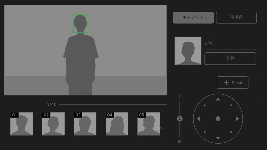 あらかじめカメラで撮影した人物の顔を登録しておくことができ、登録された人物が検知エリアに入った場合、自動的にフレーミングを開始します。