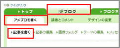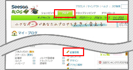 ページ上部メニューの「ブログ 」タブを選択し、