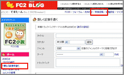 ページ左部メニューの「ブログを書く」、
