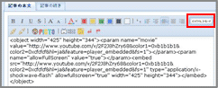 「記事の本文」エリアの右上にある「<HTML>モード」のボタンを