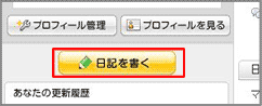 トップページのプロフィール写真下にある「日記を書く」ボタンをクリックし、「日記を書く」ページを開きます。
