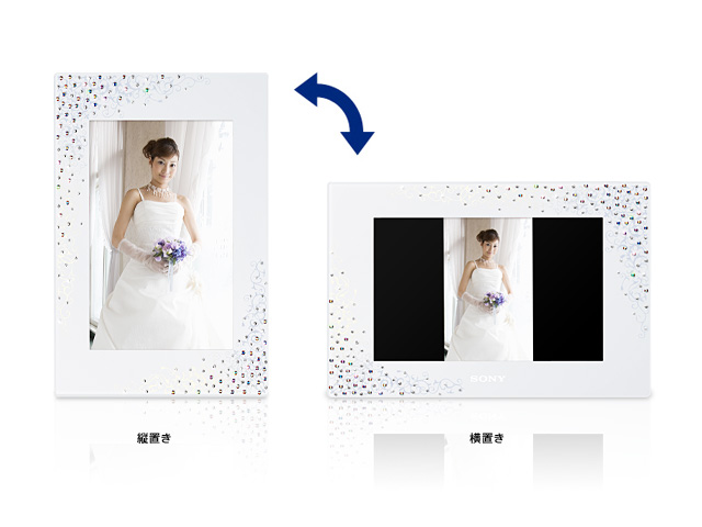 ソニー独自の縦横位置感知センサーを内蔵。本体の置き方を変えるだけで、表示写真が自動で回転します。