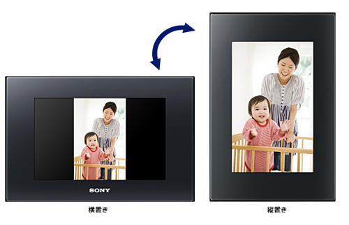 ソニー独自の縦横位置感知センサー内蔵により、本体の置き方を変えるだけで、表示写真がすばやく自動的に回転します。