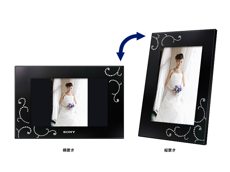 ソニー独自の縦横位置感知センサー内蔵により、本体の置き方を変えるだけで、表示写真がすばやく自動的に回転します。