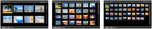 メモリーカードや内蔵メモリーに保存した画像をサムネイルで表示できます。たくさんの写真を一覧できるので、見たい写真を探すときに便利です。