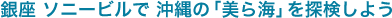 ソニービル屋外のイベントスペース ソニースクエアには、14トンの大型水槽を設置して本物の魚たちが泳ぎ、館内では沖縄の海とそこに棲む様々な生き物たちをハイビジョン映像として再現します。