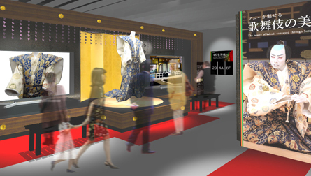 ソニーショールーム1階1Dでは、 実際に市川猿之助さんが演じた佐藤忠信役の衣裳を展示し、4K対応液晶テレビ〈ブラビア〉で上映するとともに、展示されている衣裳を実際に付けている舞台の様子をお楽しみいただけます。その他、ソニー製品で歌舞伎の“美しさ”を撮影・上映する体験もご提供します。