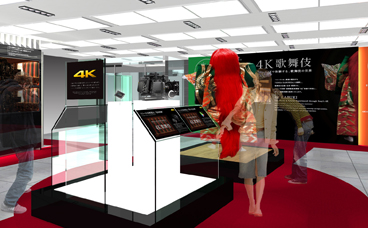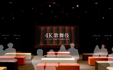 8階コミュニケーションゾーン OPUS(オーパス)では、ソニー製 CineAlta(シネアルタ)カメラ「F65」で撮影した迫力の4K映像で映し出される歌舞伎の世界をお楽しみいただけます。200インチの大スクリーンや5.1chサラウンドの音響を使い、演目「義経千本桜」を、市川猿之助さん、中村勘九郎さんのインタビューをまじえながら上映いたします。また1階エントランスホールでは、ソニーの4K撮影用カメラ CineAlta(シネアルタ)4Kカメラ「F65」、「F55」、「F5」の3台を展示し、ソニーの4K技術についてご紹介します。