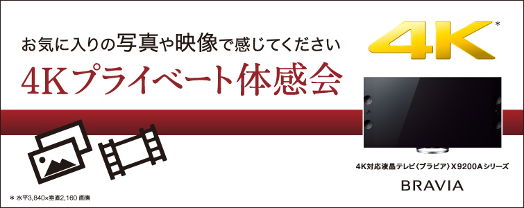 ソニーショールーム、ソニーストア 名古屋、ソニーストア 大阪では、お気に入りの写真や映像をお持ちいただき、新発売の4K対応液晶テレビ〈ブラビア〉X9200Aシリーズでご覧いただくことができる体感会を開催いたします。