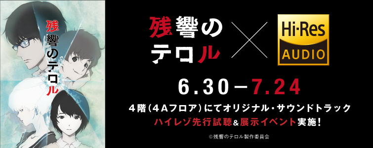 4階4Aハイレゾ・フロアでは、 7月9日(水)に発売される、菅野よう子さんが手掛ける「残響のテロル」オリジナル・サウンドトラックの発売を記念して6月30日(月)から、一足早くハイレゾ音源にて体感できます。