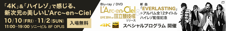 また、ソニービル8階OPUSで開催の−「4K」&「ハイレゾ」で感じる、新次元の美しいL’Arc〜en〜Ciel−の連動企画としてL’Arc〜en〜Cielを含む様々なアーティストの楽曲を、Xperia™ Z3およびXperia™ Z3 Tablet Compactを使用し、ハイレゾ音源でお楽しみいただけるスペースを設けております。