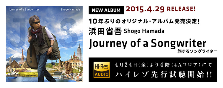 4階4Aハイレゾ・フロアでは、 4月29日に発売されるニューアルバム「Journey of a Songwriter 〜 旅するソングライター」発売を記念して4月24日よりアルバムの一部を先行試聴を開催いたします。