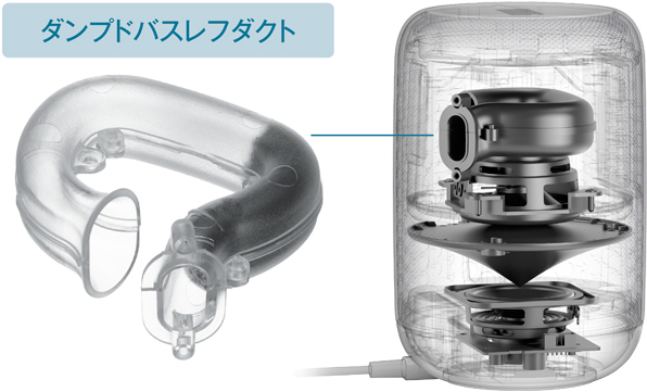バスレフダクト方式の低音の量感、密閉方式の伸びやかさ、解像度の良い音程を両立させるため、ダクト内部に共振の強さを最適化するダンプ材を装填しています。これによりサブウーファーユニットの強力な駆動力と容積の適正化を図り、上質な低域を再現できます。