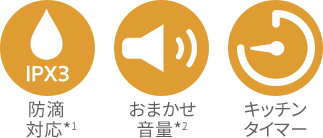 *1 IPX3とは、鉛直から60度までの角度によって噴霧した水の影響を受けないことを確認した ものです。水の中に入れたり、強い水しぶきにあてないでください。防滴仕様はスピーカーグリルを装着した状態を指します *2 ソフトウェアアップデートで対応予定