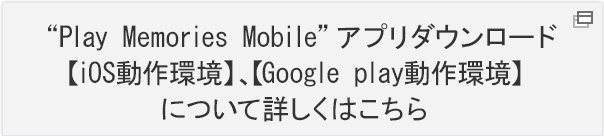 ※ PlayMemories Mobile Ver.2.0以降との組み合わせで利用できます。このアプリケーションは、すべてのスマートフォン・タブレットで動作を保証するものではありません。電波環境やスマートフォン側の性能により、使用中にWi-Fiが切断されることがありますが、再度接続することにより、引き続き機能を継続してお使いいただくことができます
