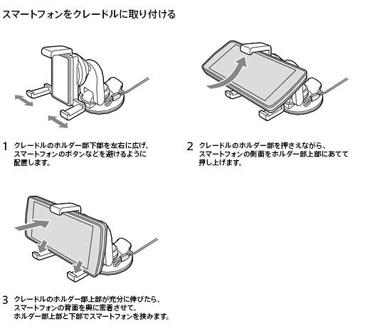 ※ 取り付け後は、スマートフォンが動かないことを確認するなどして、確実に取りつけられていることを確認してください