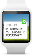 おなじみ「LINE」も、もちろんSmartWatch 3に対応しています。メッセージが表示されるだけじゃなく、そのまま音声返信もできちゃいます。上司や先輩の手前、スマートフォンを出しにくい場面でも、さらっと確認!