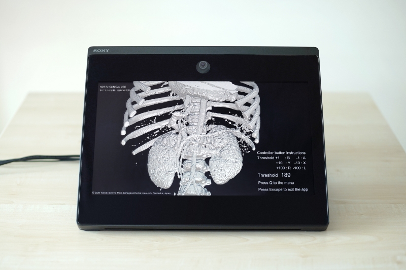 現在は私の研究室に1台設置し、主に少人数の指導に使用していますが、今後台数を増やしてもう少し人数が多い授業に取り入れることも検討しています。また、小児の手術を学生が見学する際、患者さんの体が執刀医や助手で隠れて見えにくくなることがあるのですが、手術の様子を撮影してSRDに映して確認するといった使い方もできると考えています。患者さんへの説明に使用した例はまだ多くありませんが、ゆくゆくは外来にも設置し、より手軽に見てもらえるようになるといいなと思います。