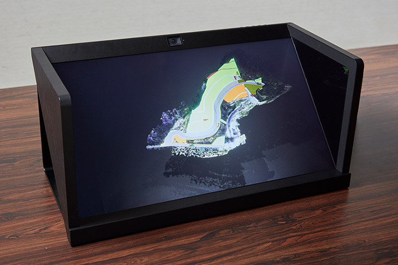 空間再現ディスプレイ ELF-SR2は、ソニー独自の視線認識技術により、裸眼のままでもクリアで色鮮やかな立体視を再現するディスプレイです。あたかもそこに施工現場が存在するかのような空間描写が、建設事業における完成イメージの事前共有、実際の工事・施工との比較検証といった用途で、新たな可能性をもたらします。