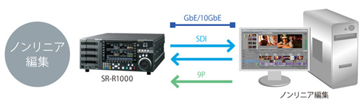 ネットワーク経由でのファイルインジェストに加え、SDIと9ピンコントロールでさなざまなノンリニア編集に対応。