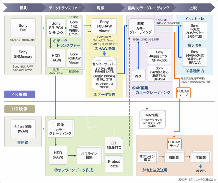 2012年11月11日、全国TBS系列でオンエアの「THE 世界遺産 -古都京都の文化財-」は、番組の一部をF65RAWによる4K撮影を行って制作されました。