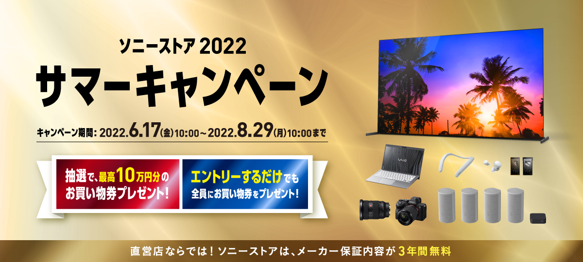 ソニーストア全店(銀座、札幌、名古屋、大阪、福岡天神、オンライン)では、【2022サマーキャンペーン】を実施中です。